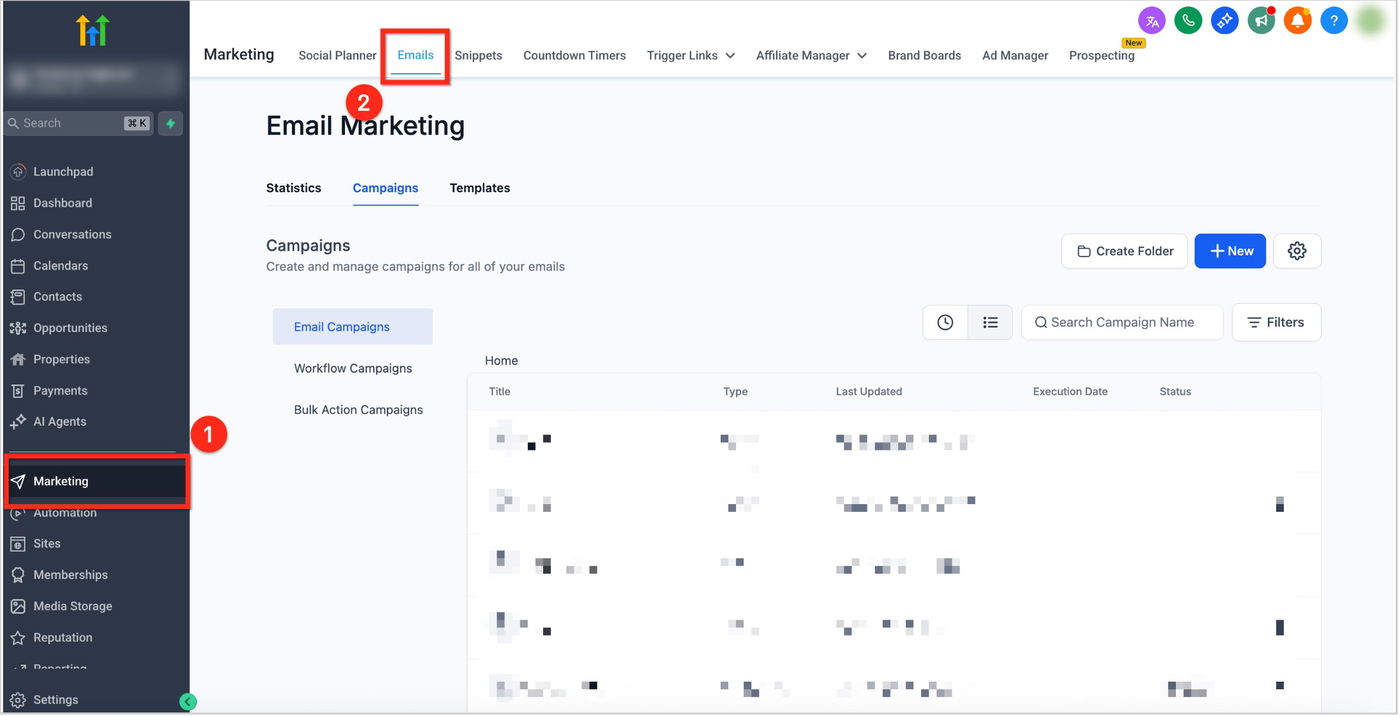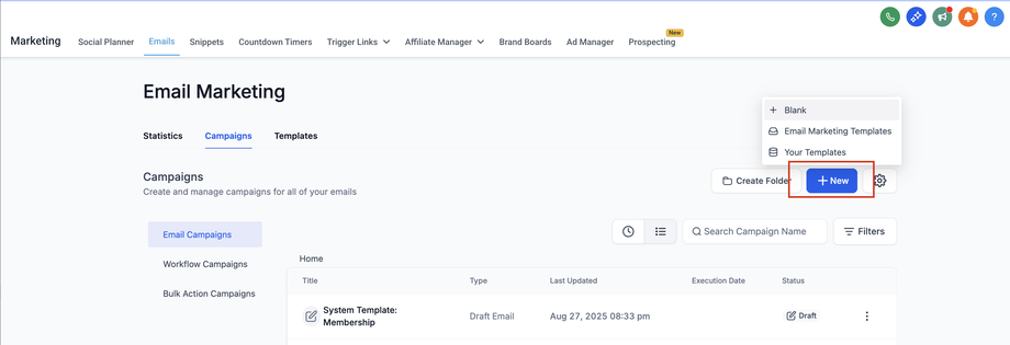 Schritt 1: Zum E-Mail-Builder navigieren