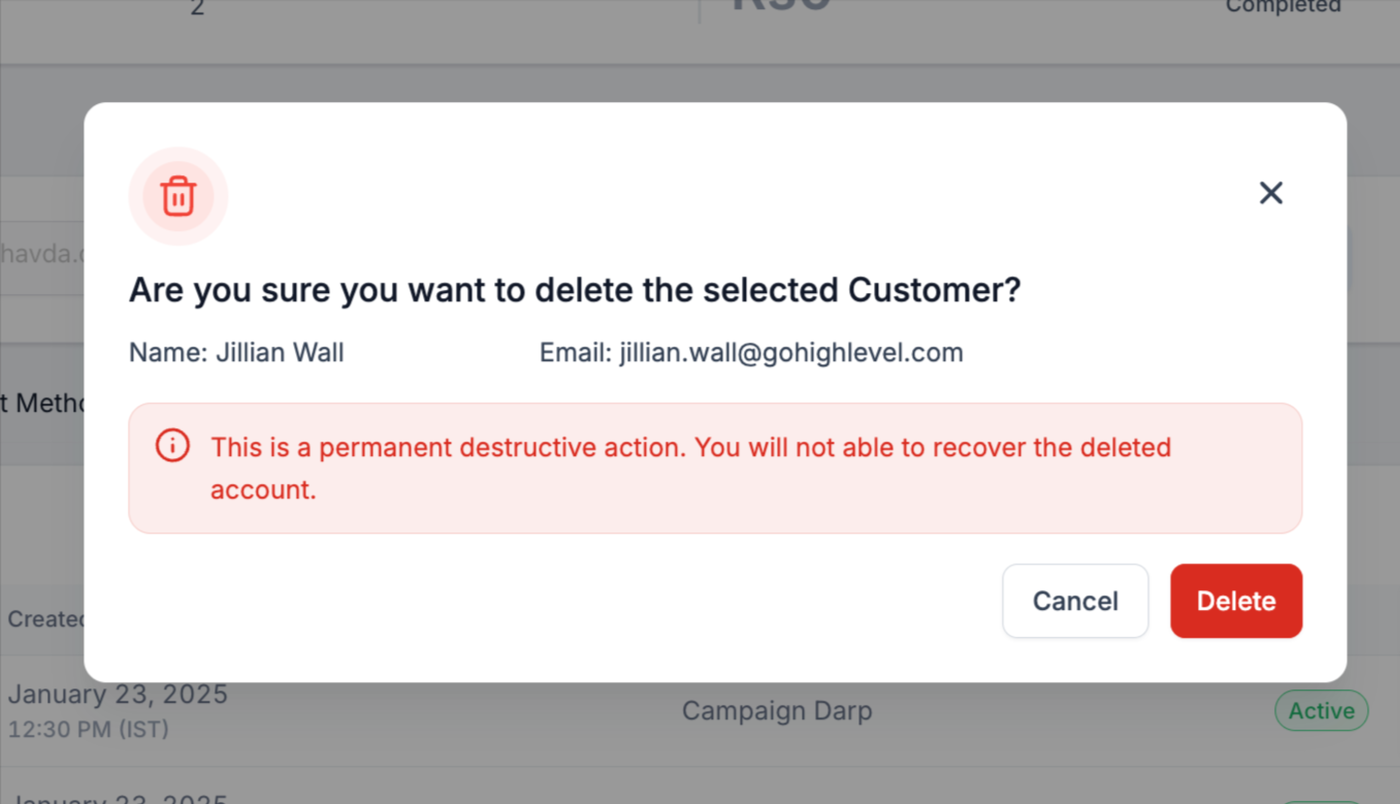 Klicken Sie auf Löschen neben dem Kundennamen.