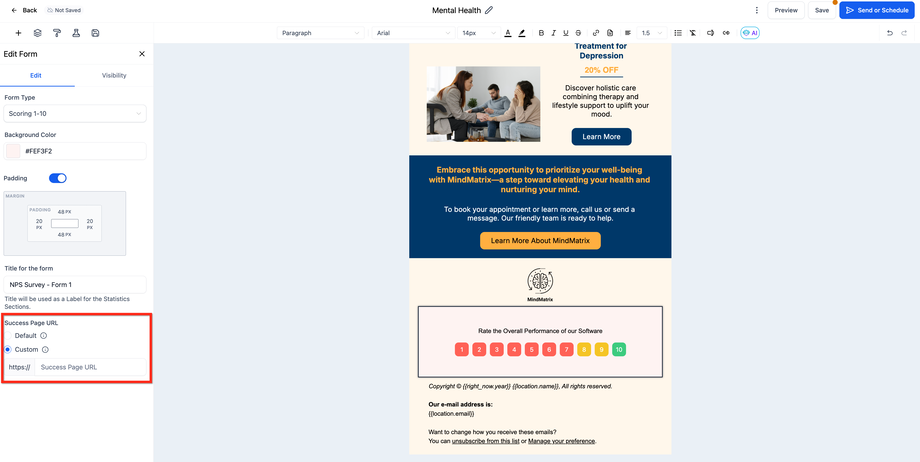 F: Benötige ich eine benutzerdefinierte Erfolgs-URL, damit Formularantworten in E-Mail-Kampagnen getrackt werden?