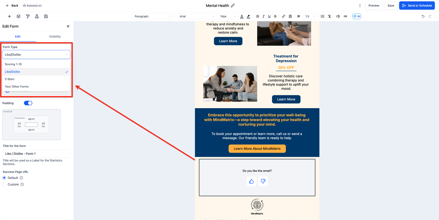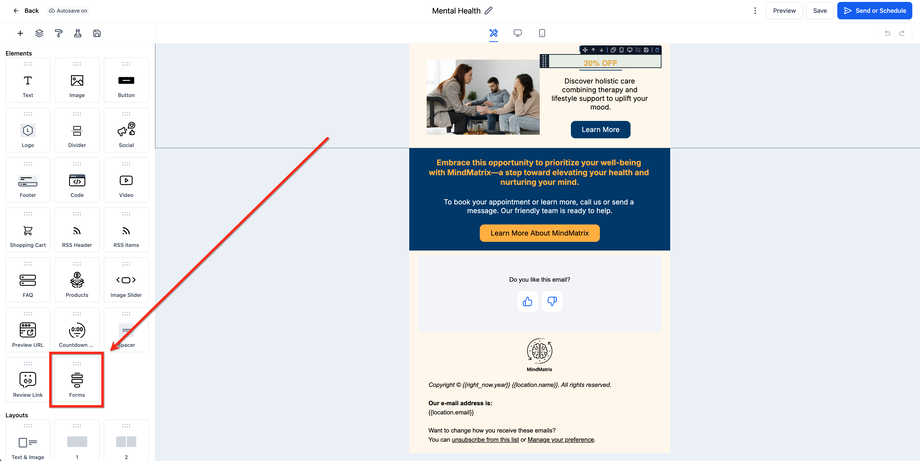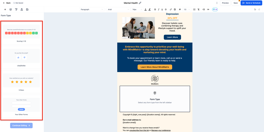 Das Inline-Formulare/Umfragen-Element ermöglicht es dir, strukturiertes Feedback direkt innerhalb einer E-Mail zu sammeln. Dieser Artikel erklärt, wie du Formulare zu deinen E-Mails hinzufügst und diese an dein Branding anpasst.