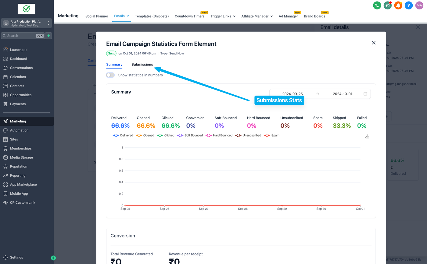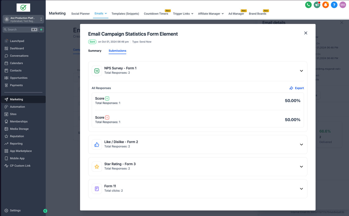 Es hilft dabei, Antworten über den Tab Einreichungen innerhalb der Kampagnenstatistiken zu sammeln und zu analysieren.
