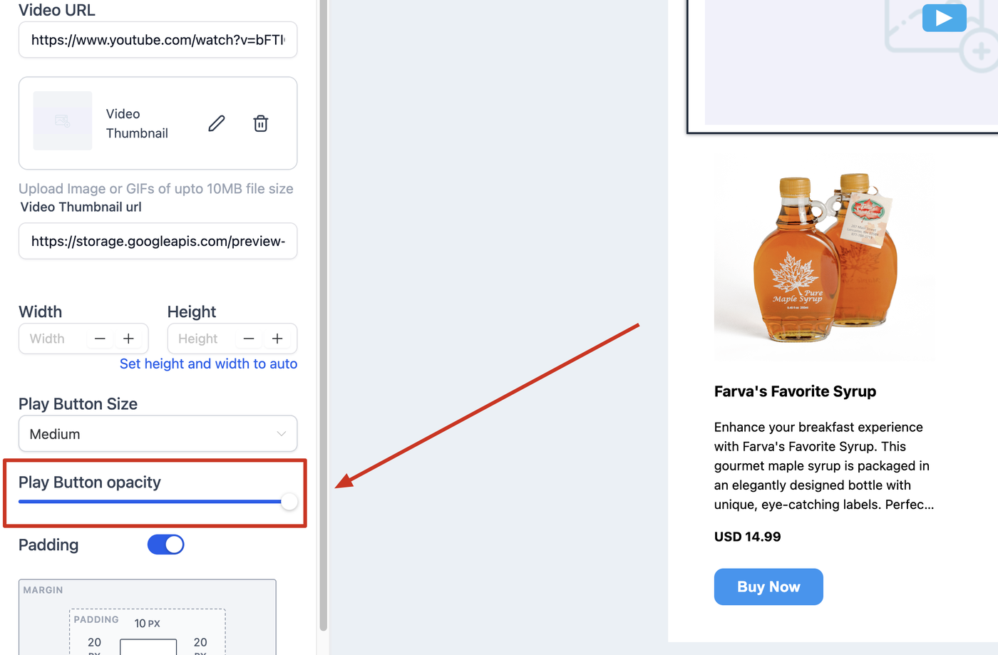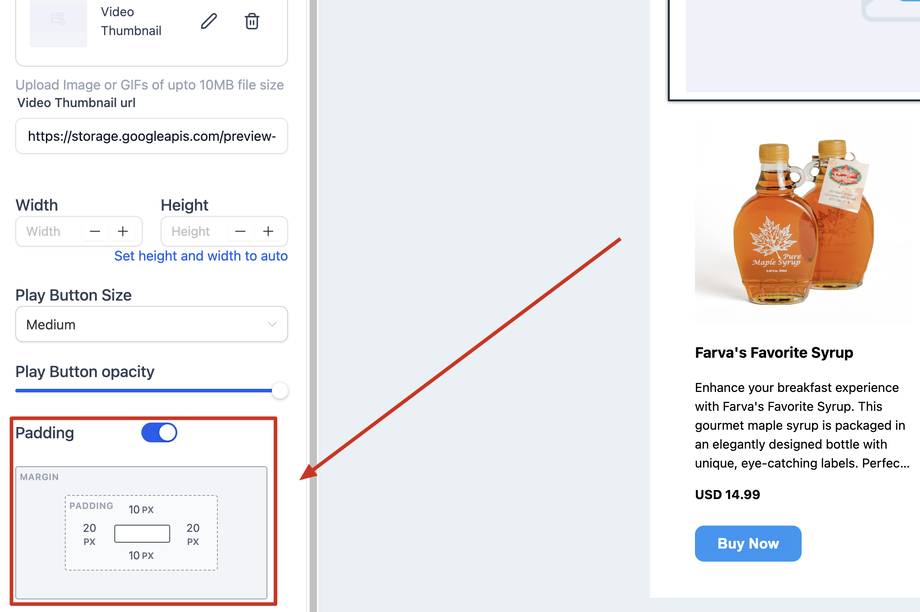 Abstände um das Video herum einstellen, um das Layout optisch zu balancieren.