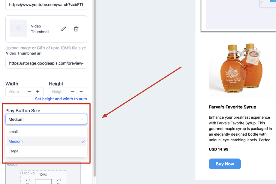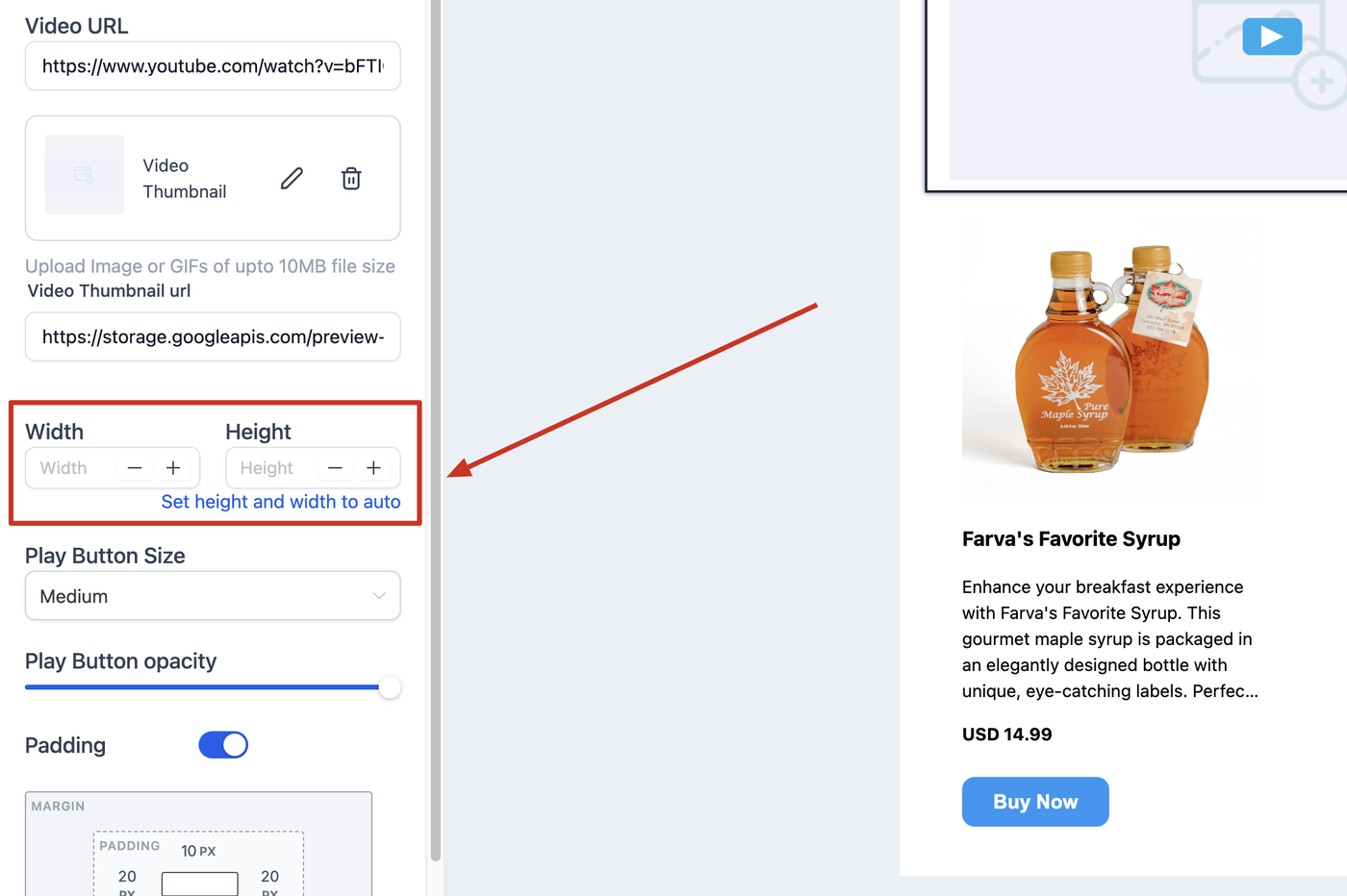Dimensionen des Video-Thumbnails definieren.