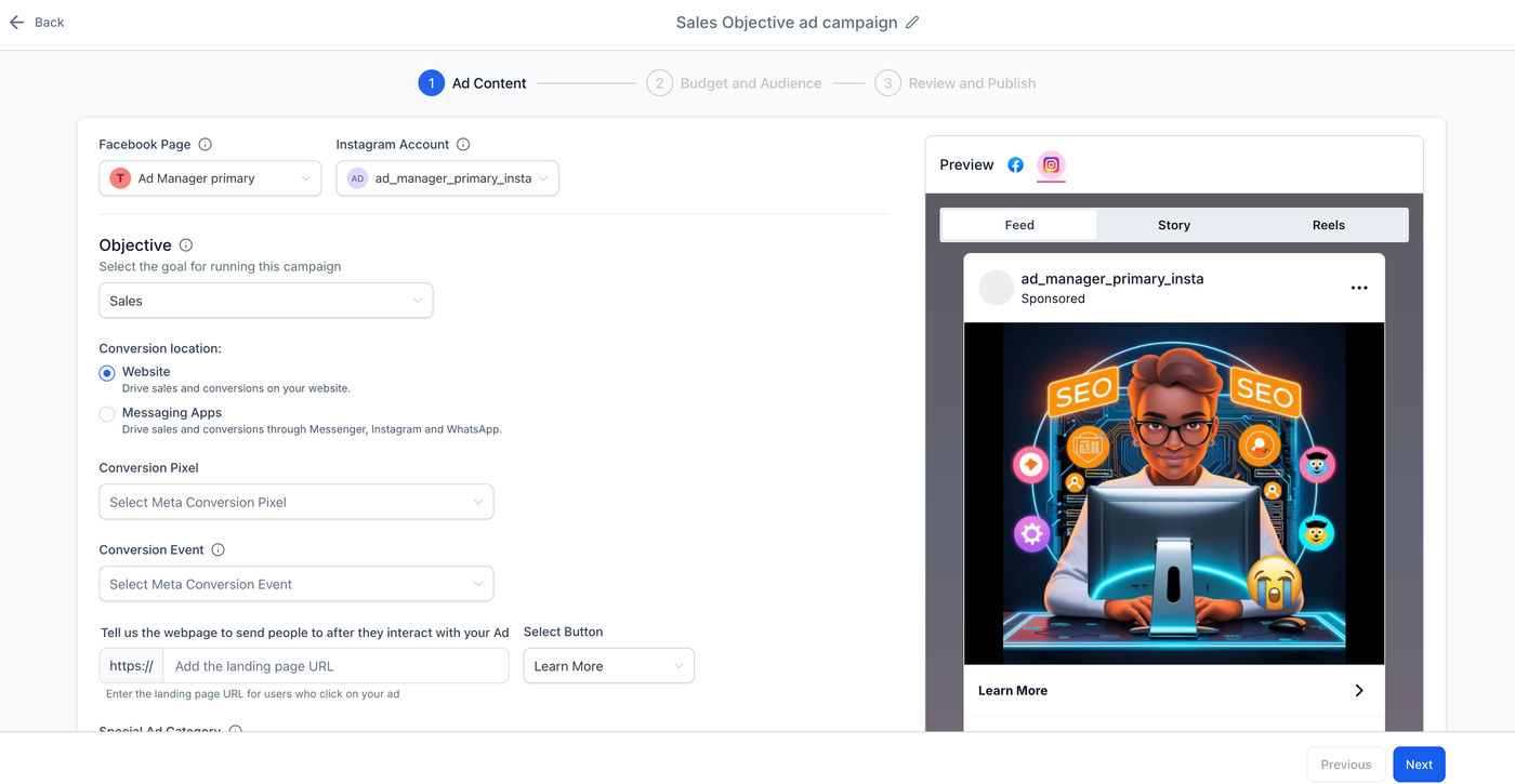 In diesem Artikel werden wir detailliert die Schritte besprechen, um eine Meta-Anzeige mit dem Ziel Sales und den Conversion-Standorten Messaging Apps und Website zu erstellen.