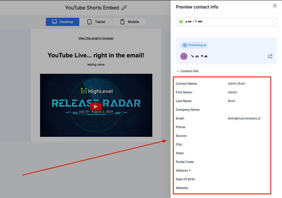 Wenn etwas nicht korrekt aussieht, schließe die Vorschau, passe den Inhalt oder die Testdaten an und klicke anschließend erneut auf Vorschau.