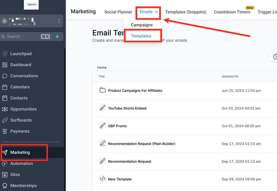 Öffne die E-Mail im E-Mail-Builder.