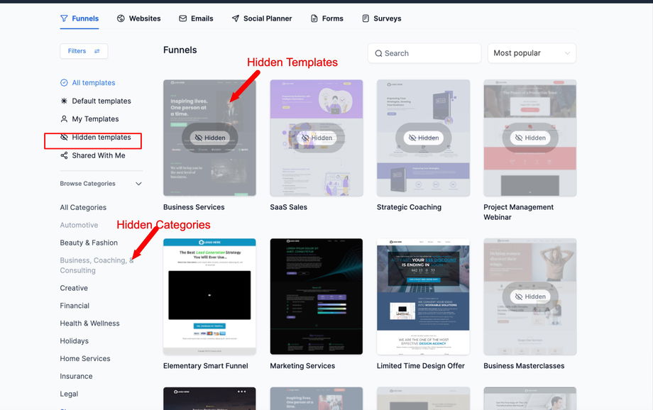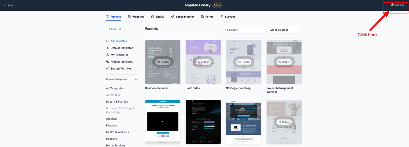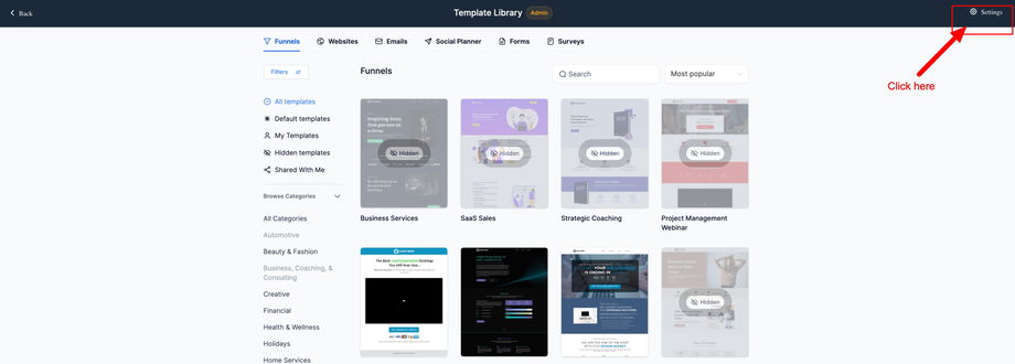 Wir freuen uns, eine neue Funktion für Agency Admins vorzustellen: die Möglichkeit, Standard-Templates auszublenden, die vom GHL-Team hinzugefügt wurden!