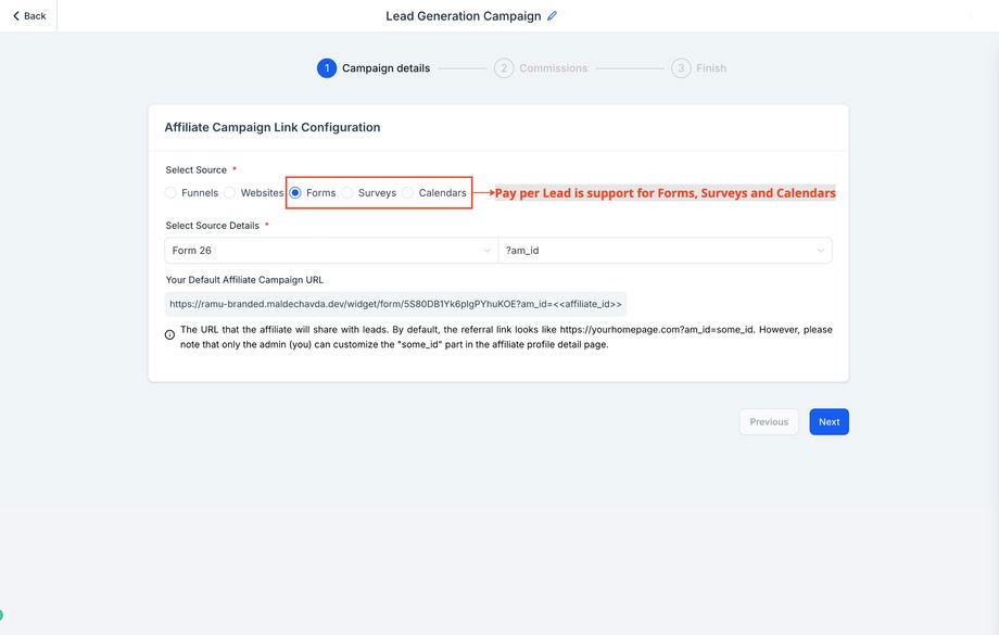 Affiliate-Marketing-Programme können von unterschiedlichen Provisionsmodellen profitieren. Während traditionelle Modelle oft auf Pay-per-Sale (Bezahlung pro Verkauf) setzen, unterstützt unsere Plattform jetzt ein Pay-Per-Lead (PPL)-Modell, bei dem Affiliates für jeden generierten Lead eine Provision erhalten. Dieses Modell eignet sich ideal für Kampagnen, die sich auf Formulare, Umfragen und Kalenderbuchungen konzentrieren. Unten führen wir Sie Schritt für Schritt durch die Einrichtung von Lead-Tracking und PPL-Provisionen, um das Management und die Belohnung von Affiliate-Aktivitäten zu vereinfachen.