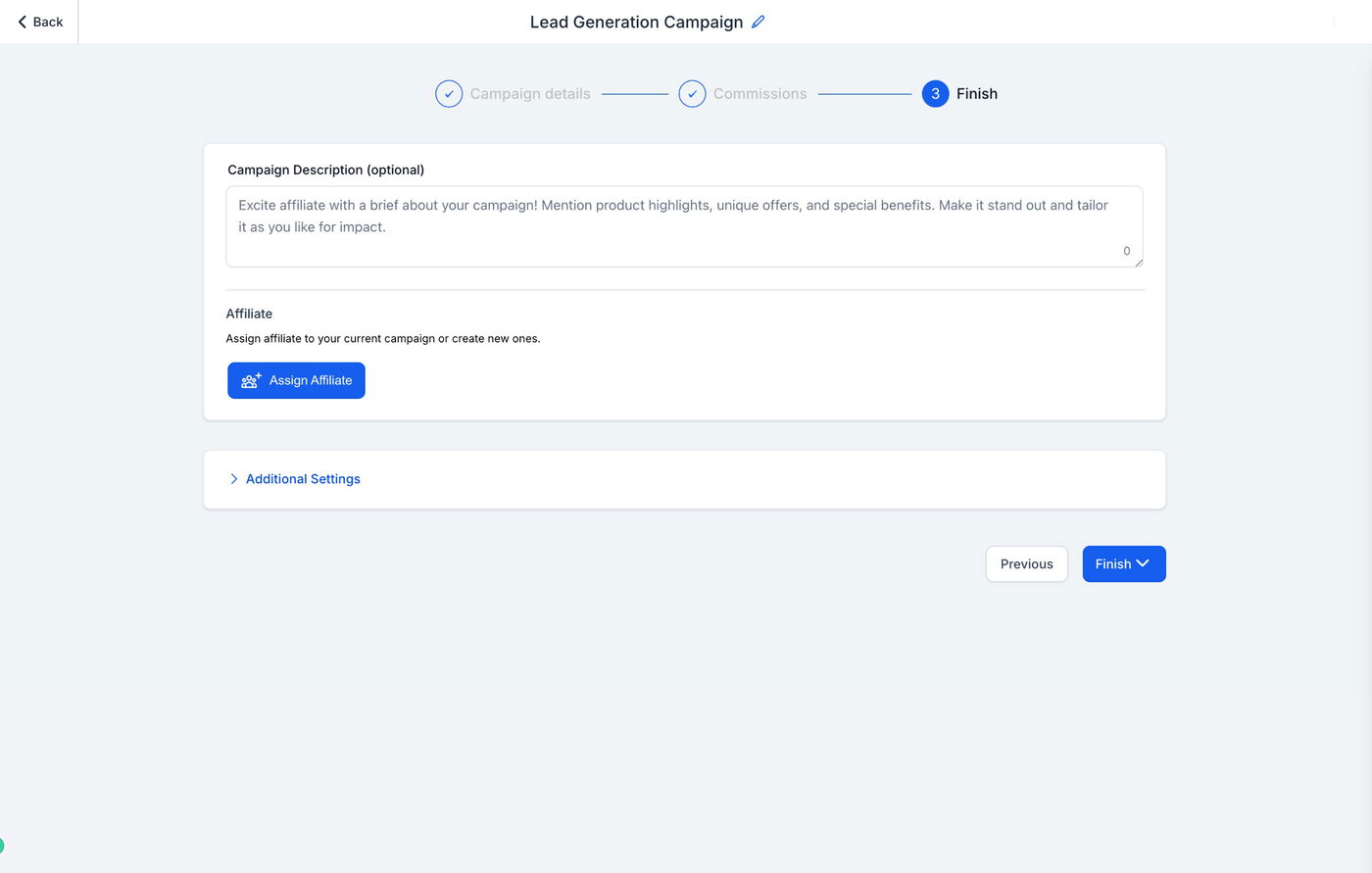 Schritt 6: Kampagnenbeschreibung hinzufügen & Affiliates zuweisen