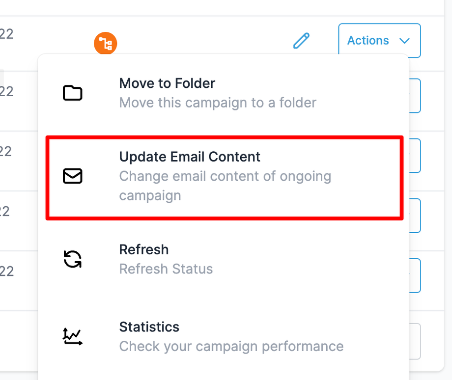 Oft kommt es vor, dass eine laufende E-Mail-Kampagne für Schedule, RSS Schedule oder Batch Schedule Inhaltsfehler enthält, wie Rechtschreibfehler, Textänderungen oder Linkänderungen, um den Markenstandards zu entsprechen.