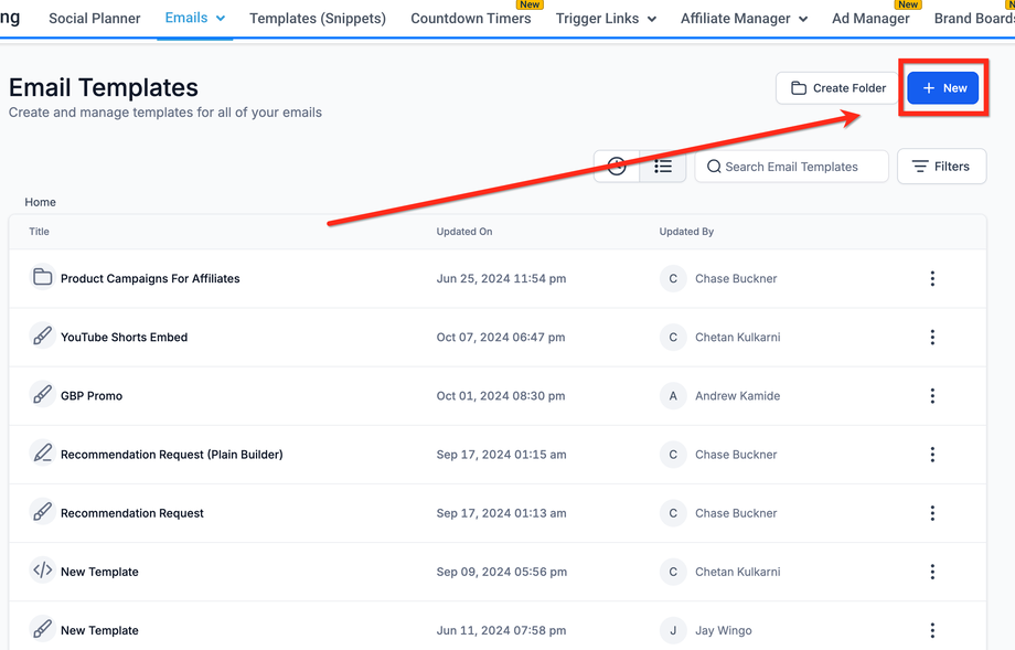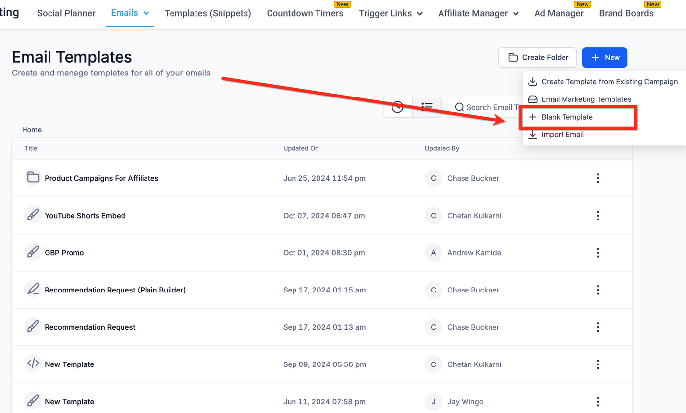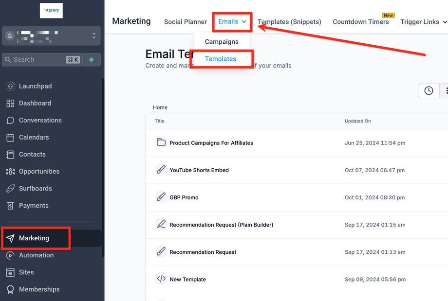 Navigieren Sie zu „Email Marketing“ → „Templates“.