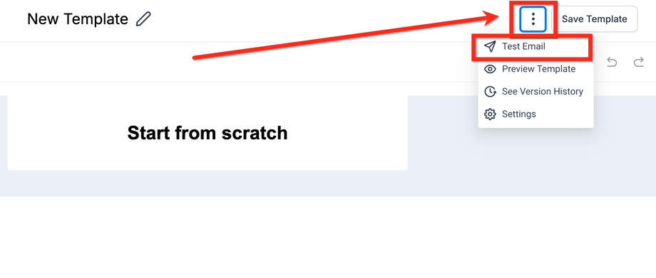 Klicken Sie auf die drei Punkte, um Einstellungen zu ändern, eine Testmail zu senden oder eine Vorschau zu sehen. Klicken Sie auf „Save template“, um den Editor zu verlassen.