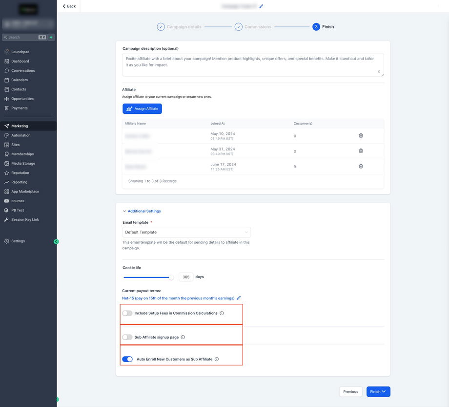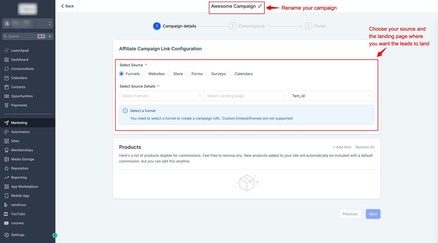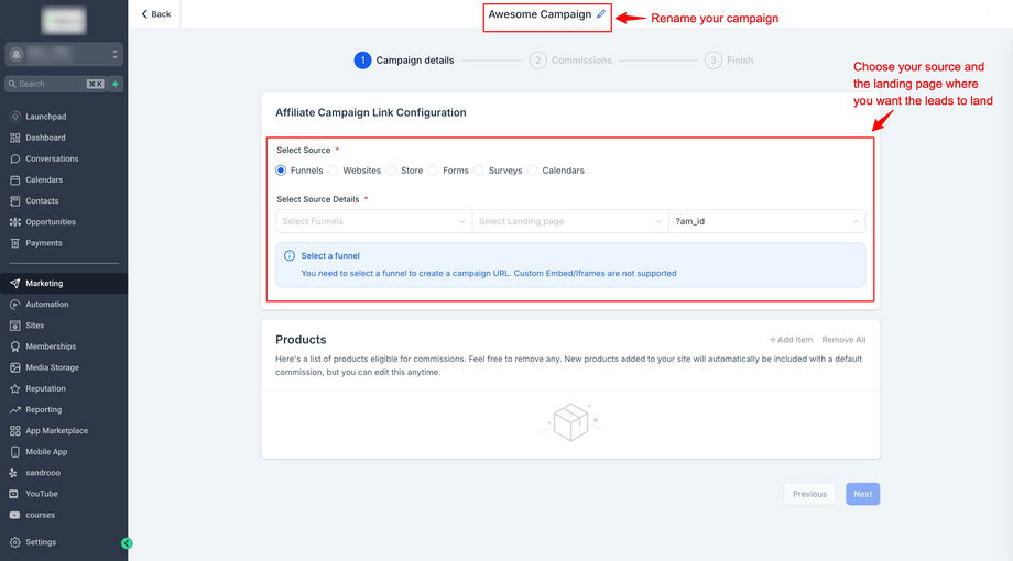 Derzeit unterstützen nur Funnels, Websites und Shops den Verkauf von Produkten über Affiliate-Kampagnen. Sie können jedoch auch Leads verfolgen und Affiliates für die Generierung von Leads über Formulare, Umfragen und Kalender bezahlen.
