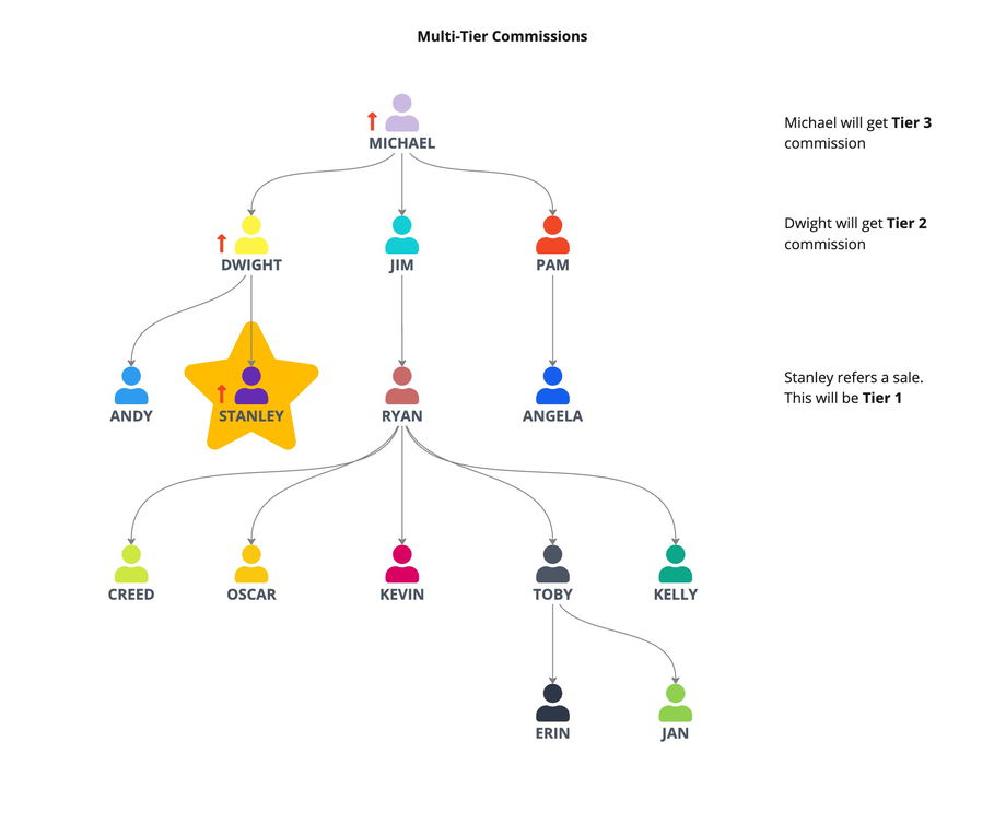 In einer Multi-Tier-Provisionsstruktur verdienen Affiliates Provisionen nicht nur für ihre direkten Verkäufe, sondern auch für die Verkäufe, die von ihren Sub-Affiliates auf mehreren Ebenen (Stufen) generiert werden. Jede Stufe kann eine andere Provisionsrate haben, wodurch sowohl Top-Level- als auch Sub-Level-Affiliates motiviert werden.