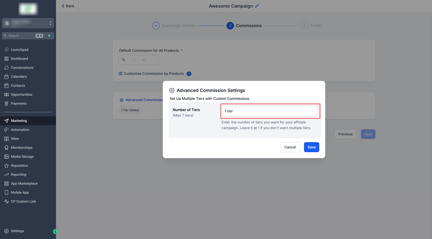 Aktivieren Sie die Option „Multi-Tier-Provisionen“.