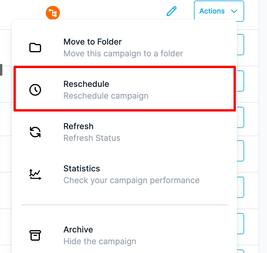 Wählen Sie die Kampagne und klicken Sie auf „Reschedule Campaign“.