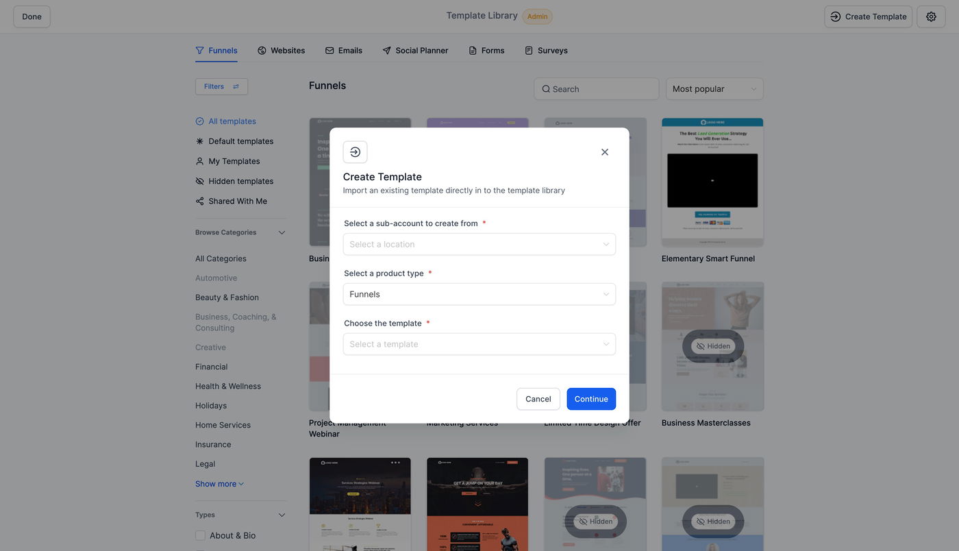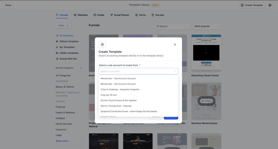 Zuvor mussten Admins durch mehrere Subaccounts navigieren, um benötigte Templates zu importieren, was zeitaufwendig war.