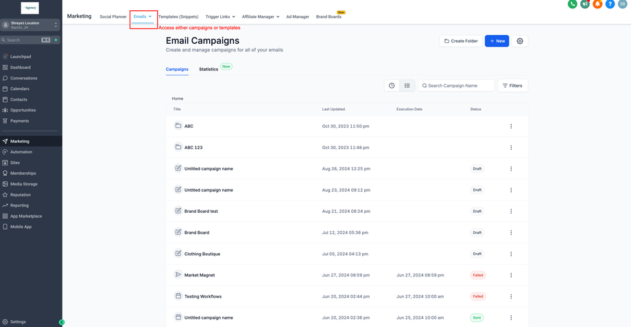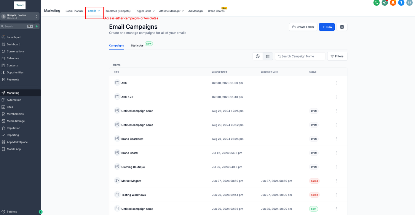 Klicke auf Email Marketing und öffne eine bestehende Kampagne oder Vorlage, die du bearbeiten möchtest.