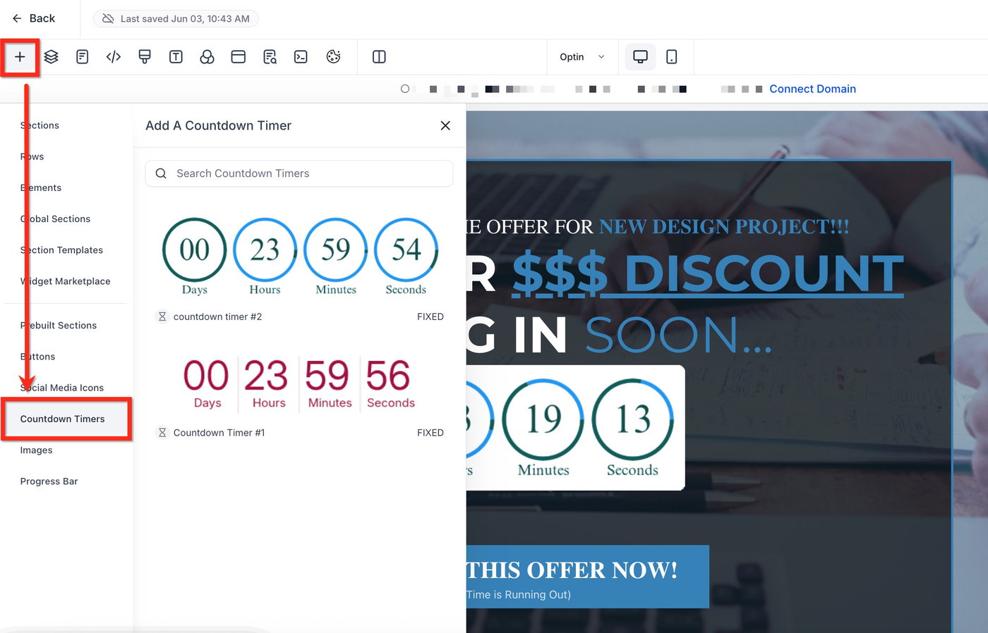 Du kannst einen Countdown-Timer auf zwei Arten in deinen Funnel einfügen: