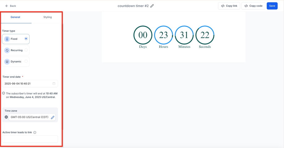 Marketing → Countdown TimersÖffne den gewünschten Timer