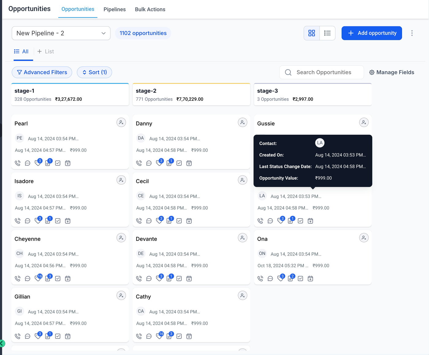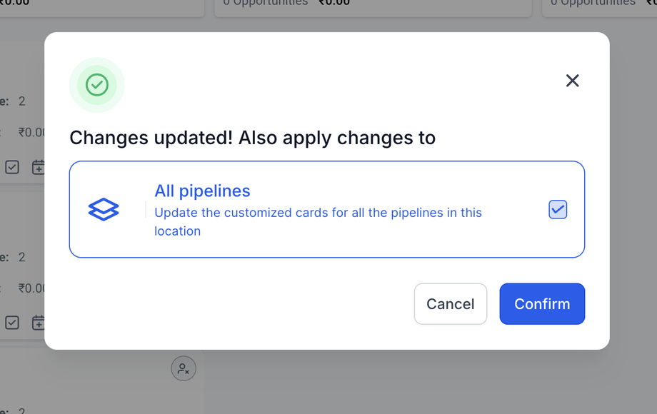 Mit dieser Funktion können Nutzer nun vollständig festlegen, welche Felder auf den Opportunity-Karten in der Pipeline-Ansicht angezeigt werden. Dadurch lässt sich die Kartenansicht so konfigurieren, dass die wichtigsten Informationen auf einen Blick sichtbar sind. Dies steigert die Effizienz im Workflow und verbessert die Übersicht über wichtige Details von Opportunities.