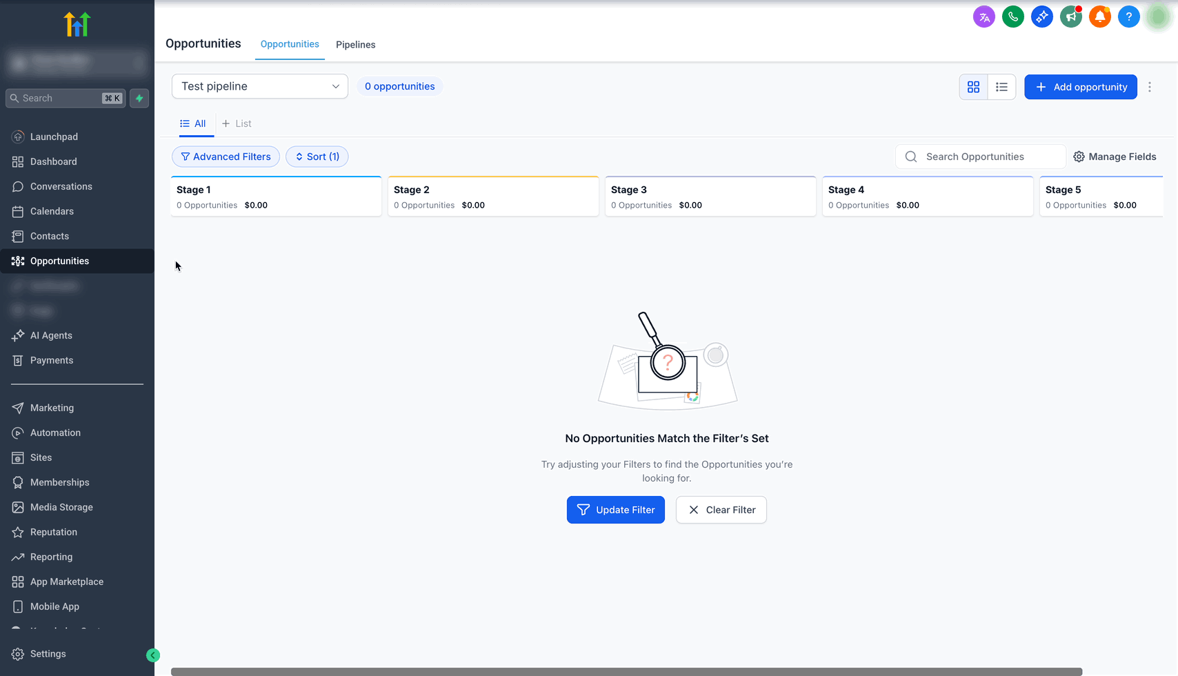 Gehe zu Sub-Account Settings → Objects → Opportunities