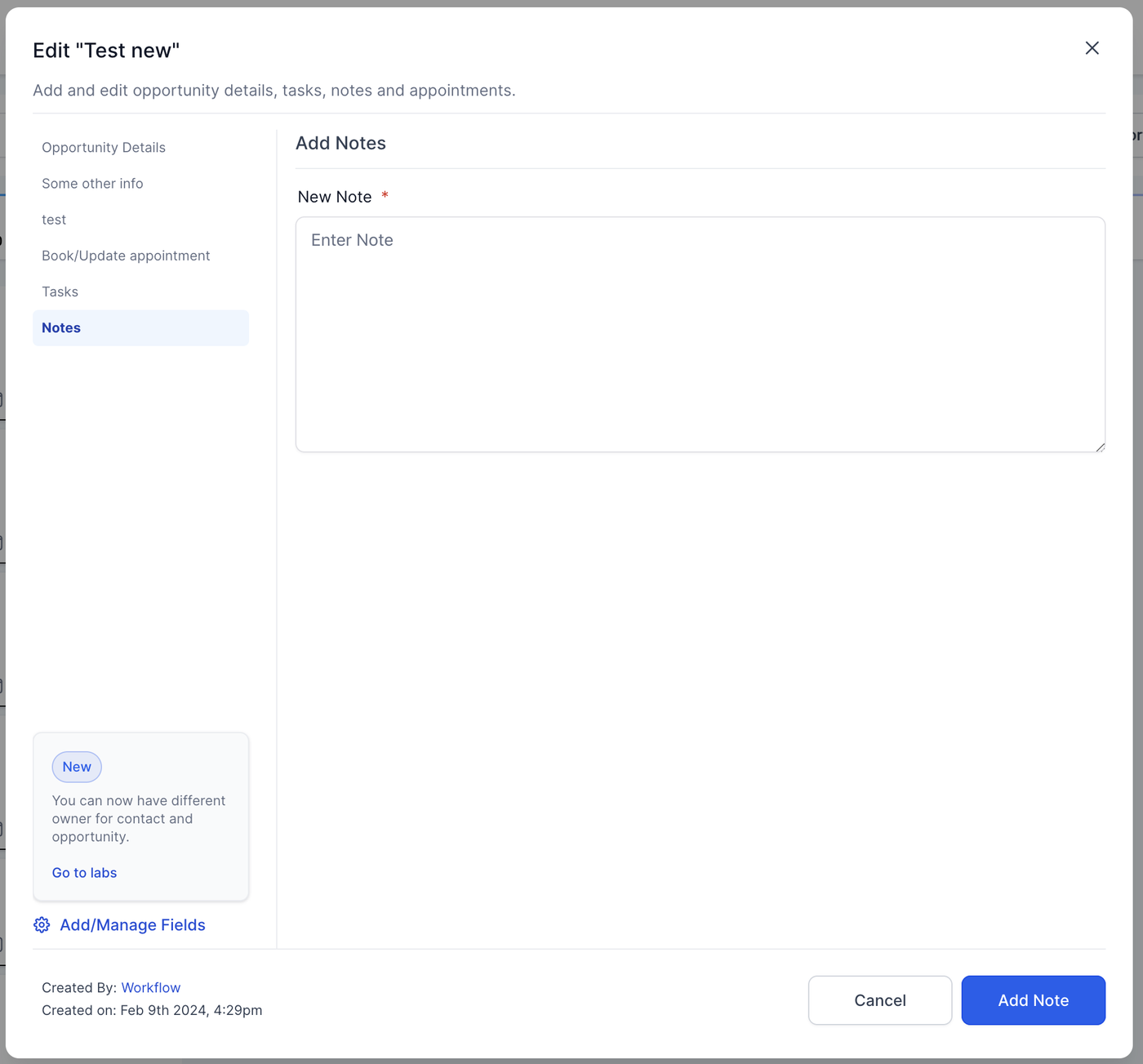 Falls erforderlich, füge neue Notizen oder zusätzliche Informationen zur Opportunity hinzu, indem du in der linken Seitenleiste auf „Notes“ klickst.