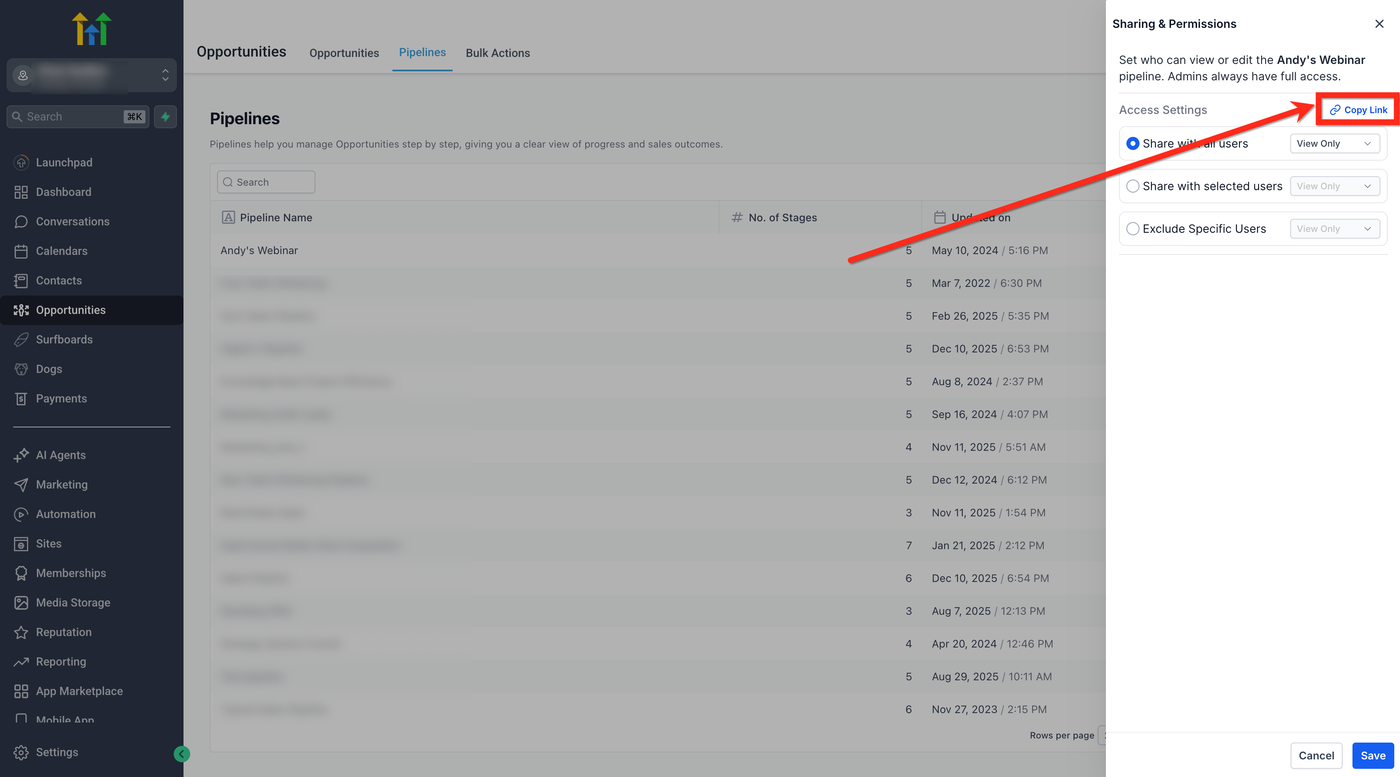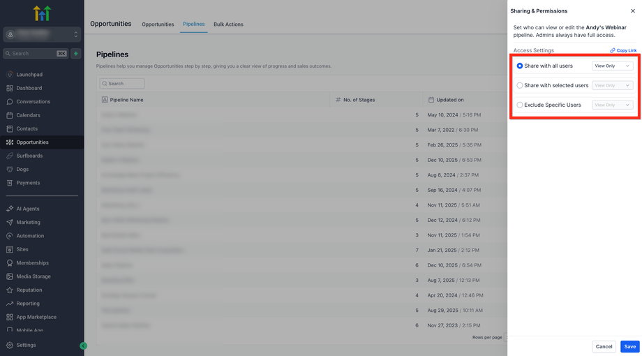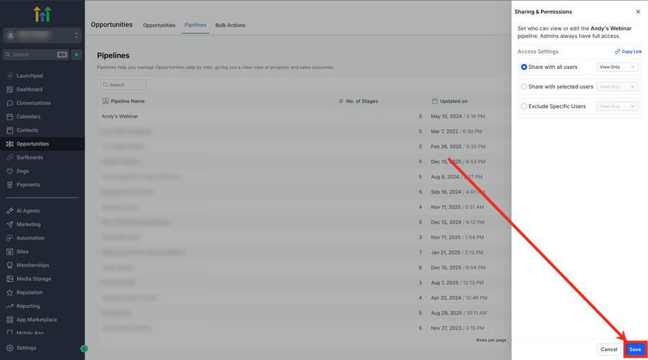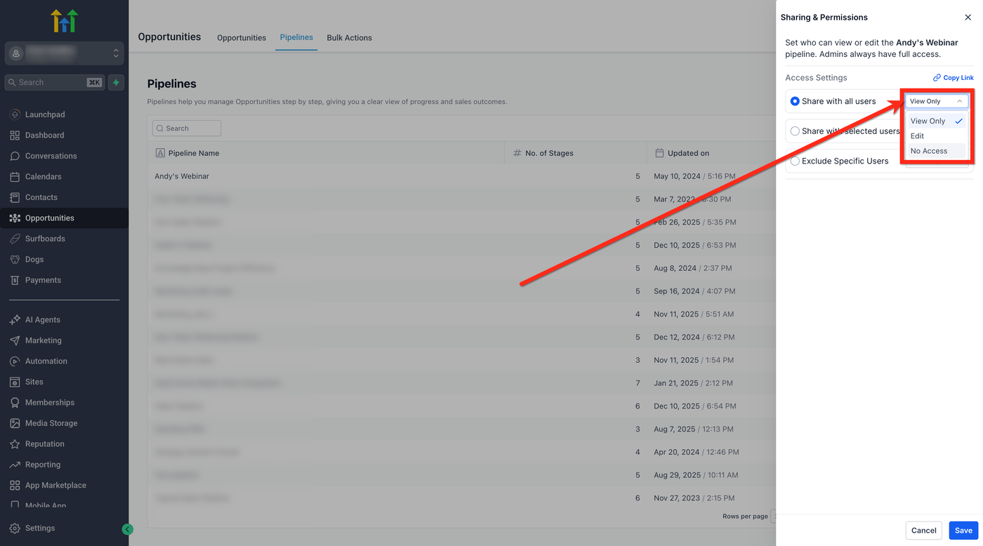 Bestimme genau, wer jede Sales-Pipeline sehen oder bearbeiten darf, halte sensible Deals privat und sorge dafür, dass jedes Teammitglied eine auf seine Rolle abgestimmte, übersichtliche Ansicht erhält. Dieser Artikel zeigt dir, wie du Pipeline-Berechtigungen in HighLevel verwaltest.