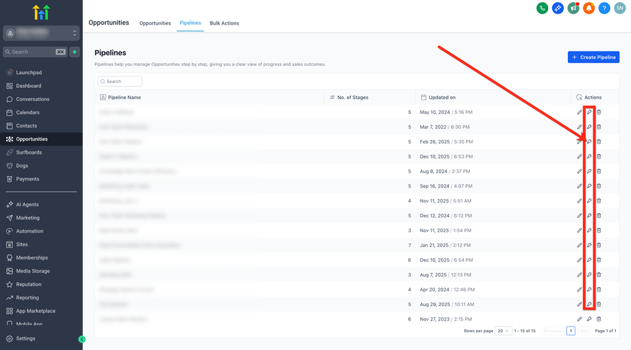 HighLevel blockiert diese Änderung. Weise die Opportunities zuerst neu zu oder lösche sie.