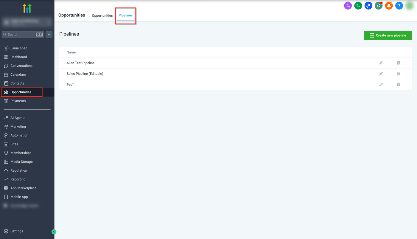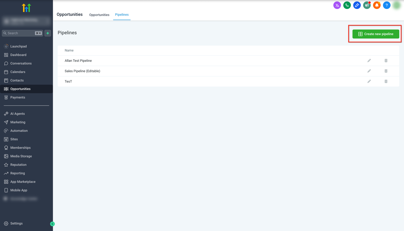 Pipelines in HighLevel helfen dir dabei, deine Vertriebs- oder Serviceprozesse zu organisieren und zu automatisieren, indem Opportunities visuell durch definierte Phasen verfolgt werden. Dieser Artikel erklärt, wie du Pipelines aufrufst, eine neue Pipeline erstellst, Phasen hinzufügst und verwaltest sowie die Dashboard-Sichtbarkeit mit der aktualisierten Pipeline-Ansicht konfigurierst.