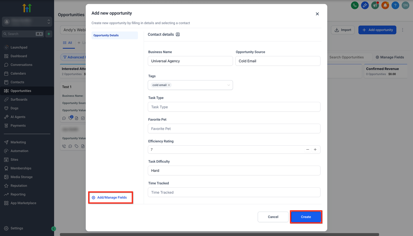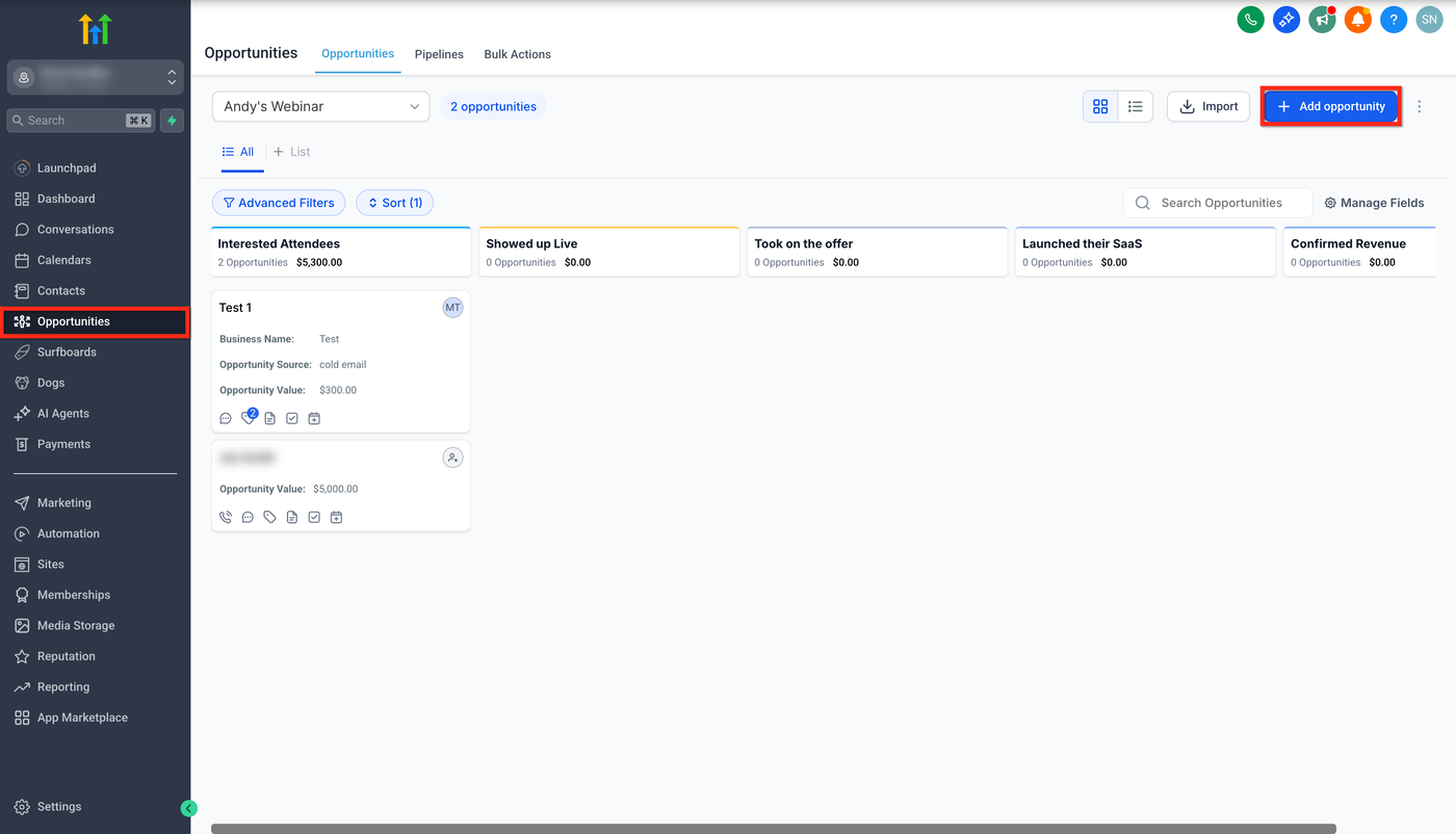 Opportunities sind zentral für die Verwaltung potenzieller Verkäufe in GoHighLevel. Diese Anleitung zeigt dir, wie du Opportunities erstellst, um Interessenten vom ersten Kontakt bis zum erfolgreichen Abschluss nachzuverfolgen.
