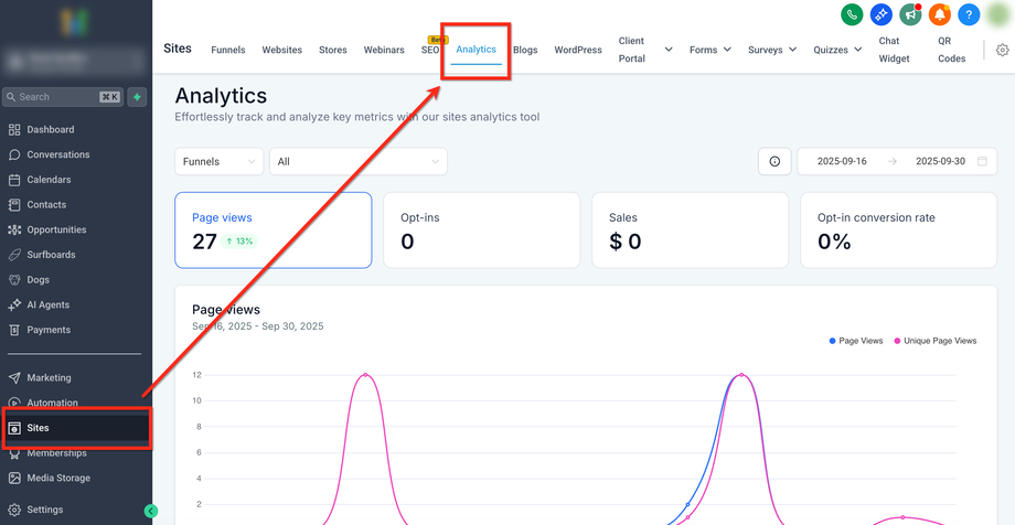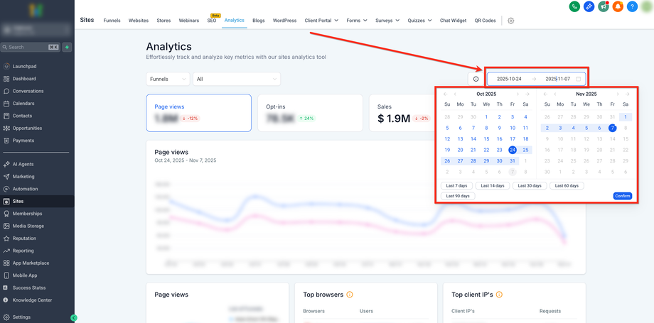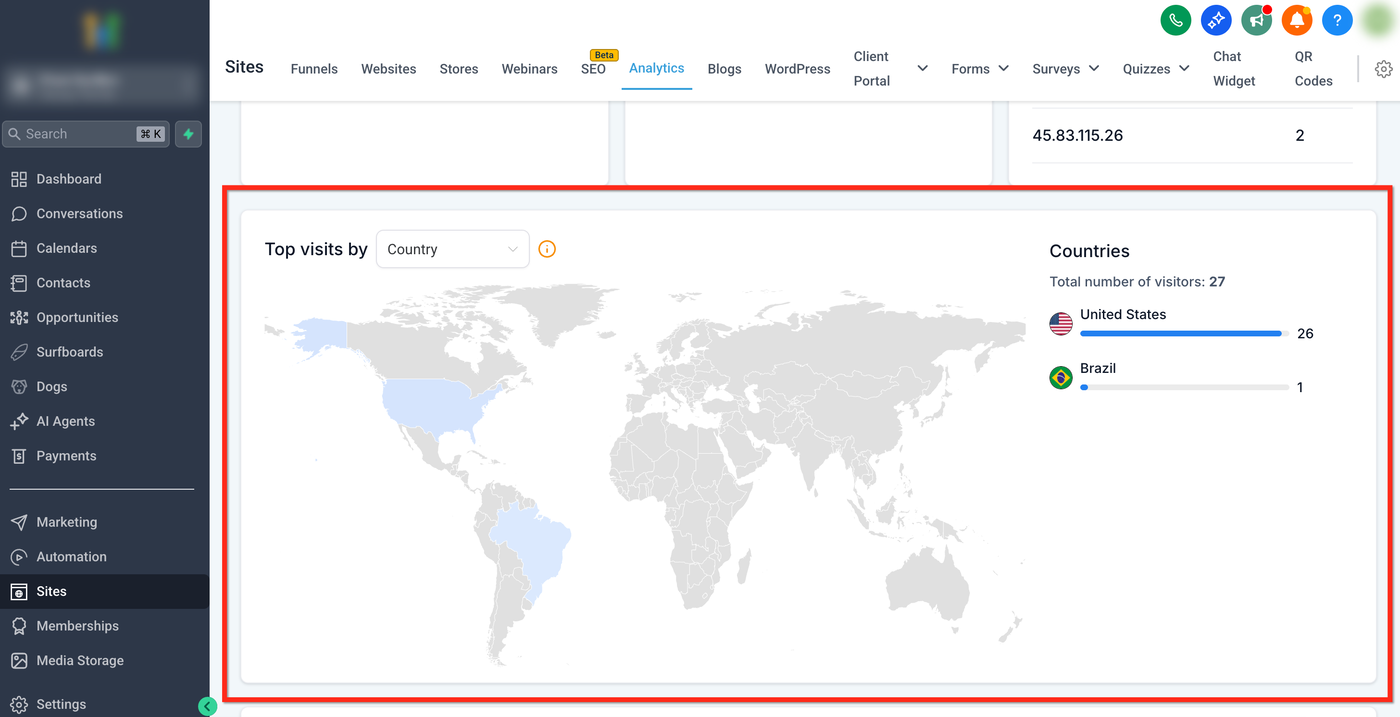 A: Ja. Die Top Visits nach Land-Heatmap ist für Funnels, Websites oder beide über den Analytics-Filter zugänglich.