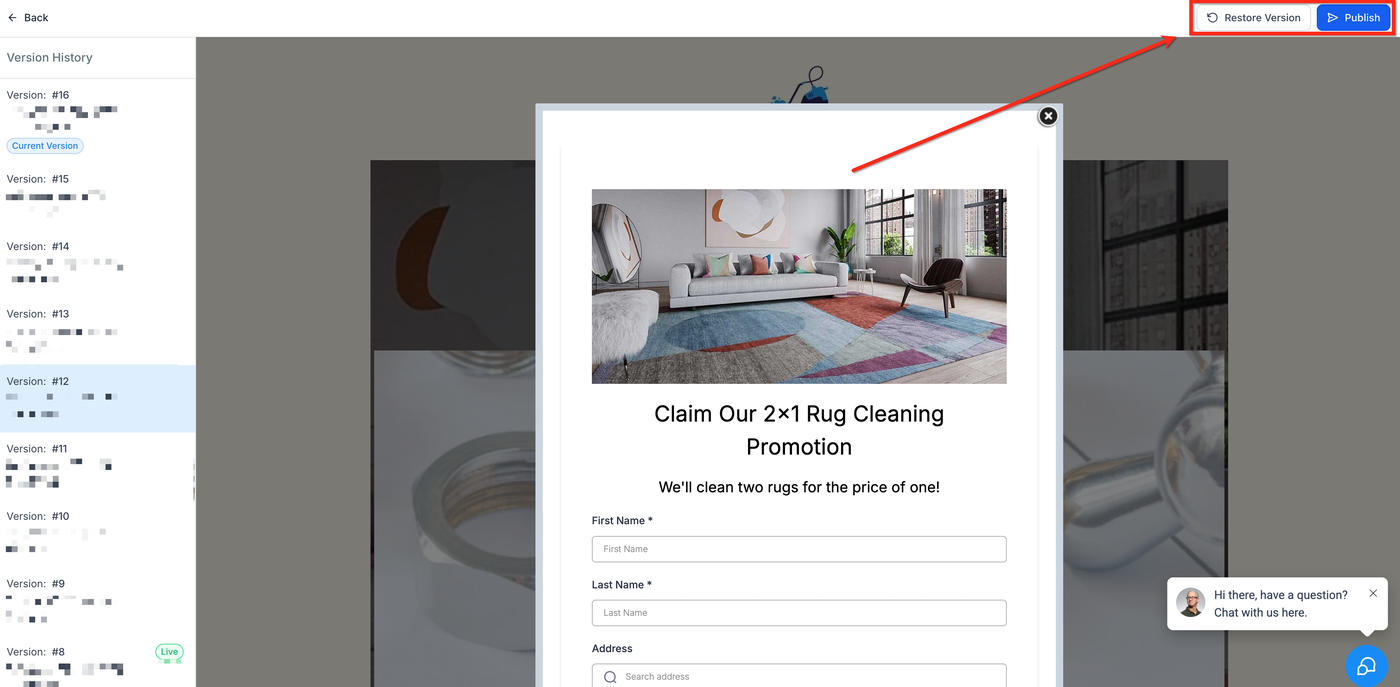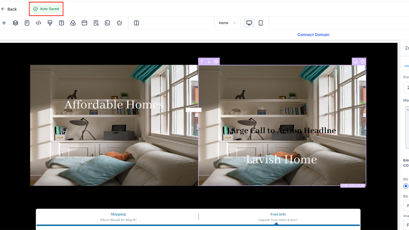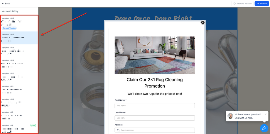 Wir haben Auto-Save und eine verbesserte Versionsverlauf-Funktion eingeführt, um das Bearbeitungserlebnis in Funnels, Websites, Blogs, Webinaren und E-Commerce zuverlässiger und benutzerfreundlicher zu gestalten. Dadurch werden deine Änderungen automatisch gespeichert und du kannst bei Bedarf problemlos auf frühere Versionen zugreifen.