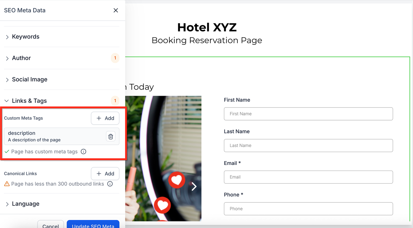 Klicken Sie auf Update SEO Meta, um die Änderungen zu speichern.