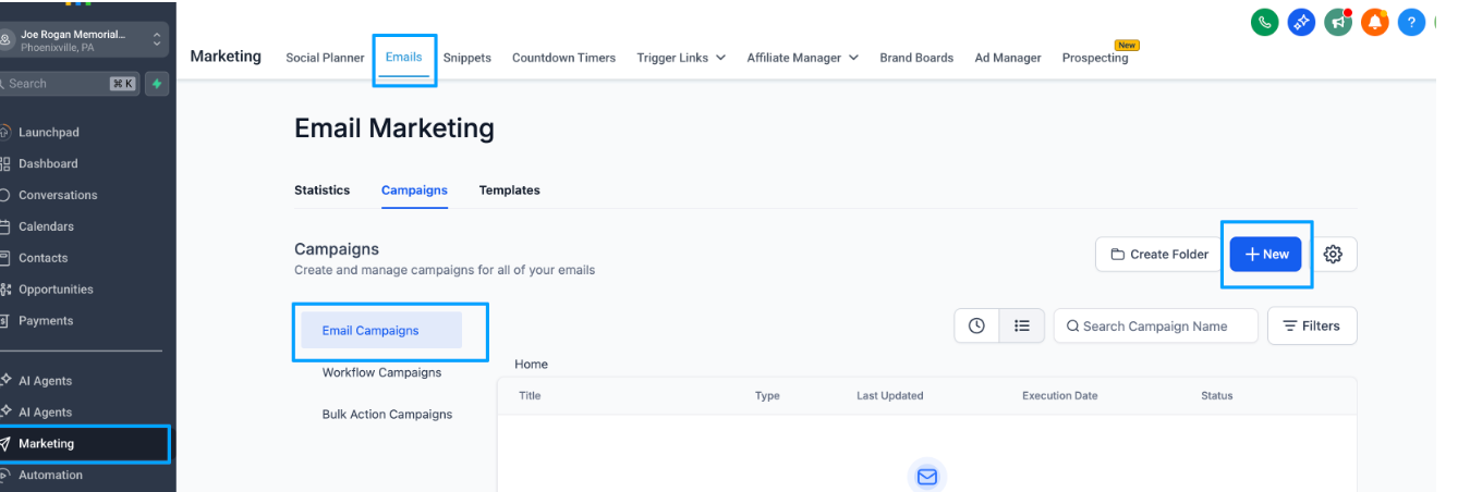 Gehen Sie zu E-Mail-Kampagnen.