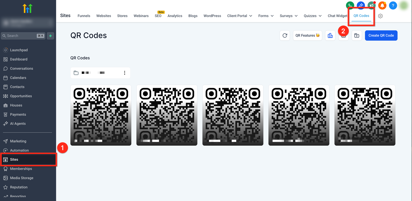 Wähle in der oberen Navigationsleiste „QR Codes“ aus.