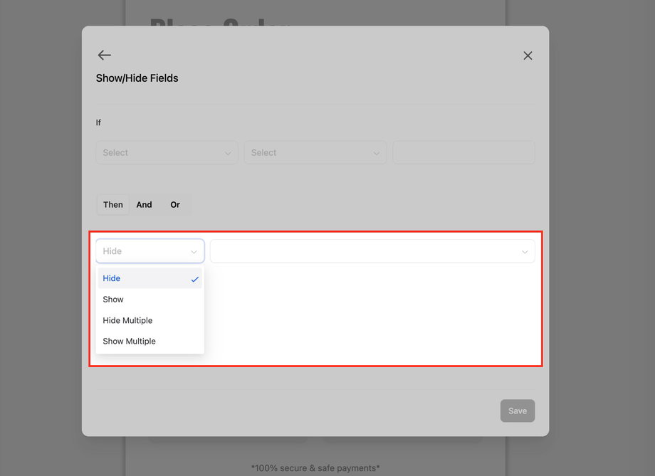 Show/Hide Fields | Steuert dynamisch, welche Felder erscheinen oder verborgen werden |