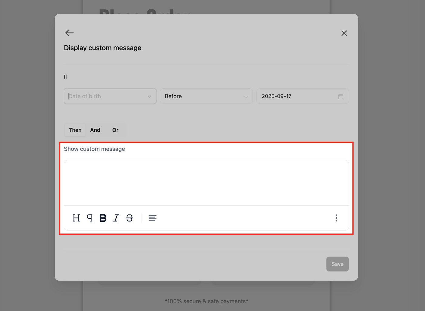 Select Field State – Wähle die Bedingung (z. B. is equal to oder is empty).
