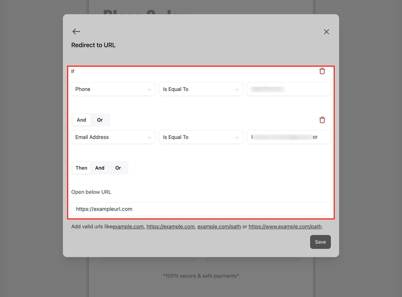 Redirect: Füge eine gültige URL hinzu (z. B. https://example.com)