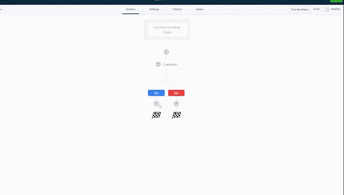 Unter dem Yes-Pfad klicke auf das + Symbol, um Actions hinzuzufügen.