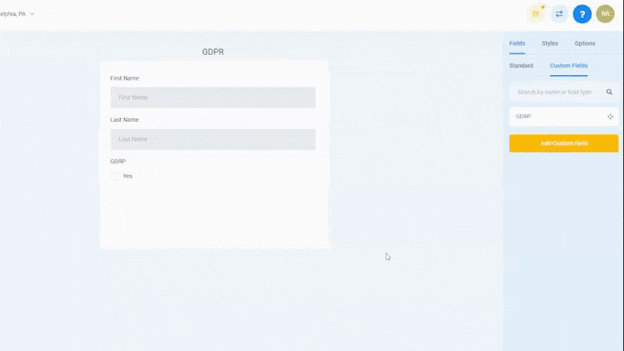 Scrolle zu Custom Fields, wo du dein GDPR Checkbox Custom Field siehst.