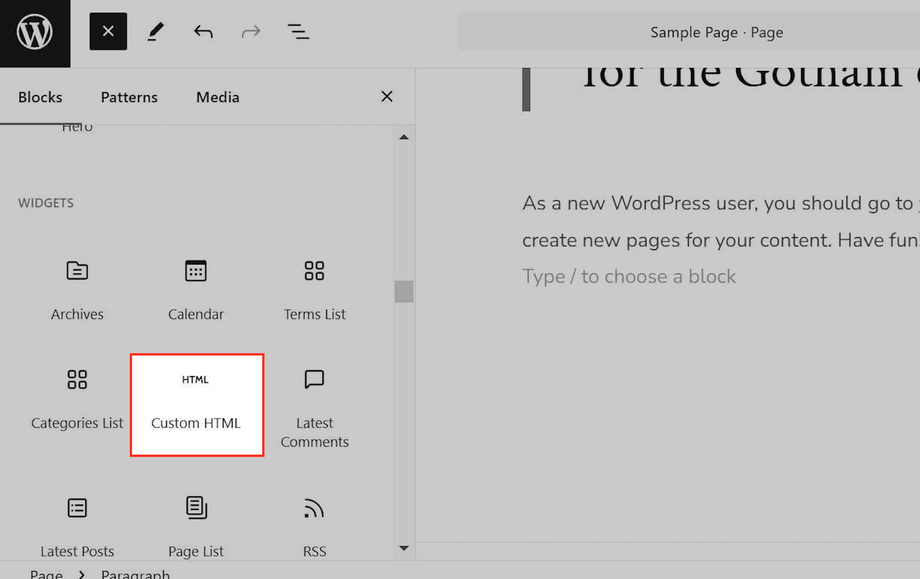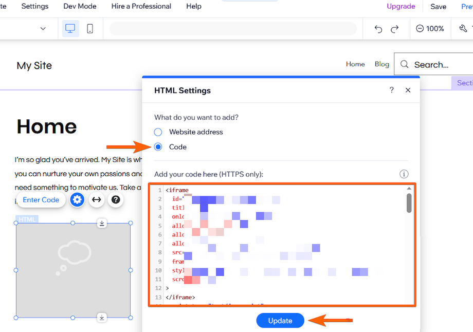 Wählen Sie Custom HTML