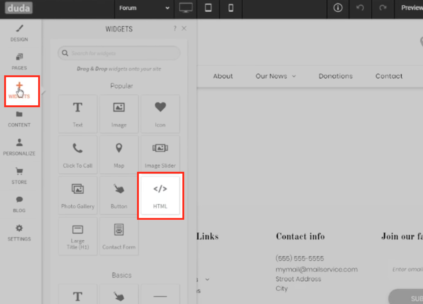 Fügen Sie ein HTML-Widget hinzu