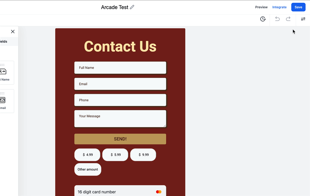Sobald Ihr Formular fertig ist, gehen Sie zum Tab „Integrate“ oben rechts. Wählen Sie den Formulartyp und klicken Sie auf „Copy Embed Code“.