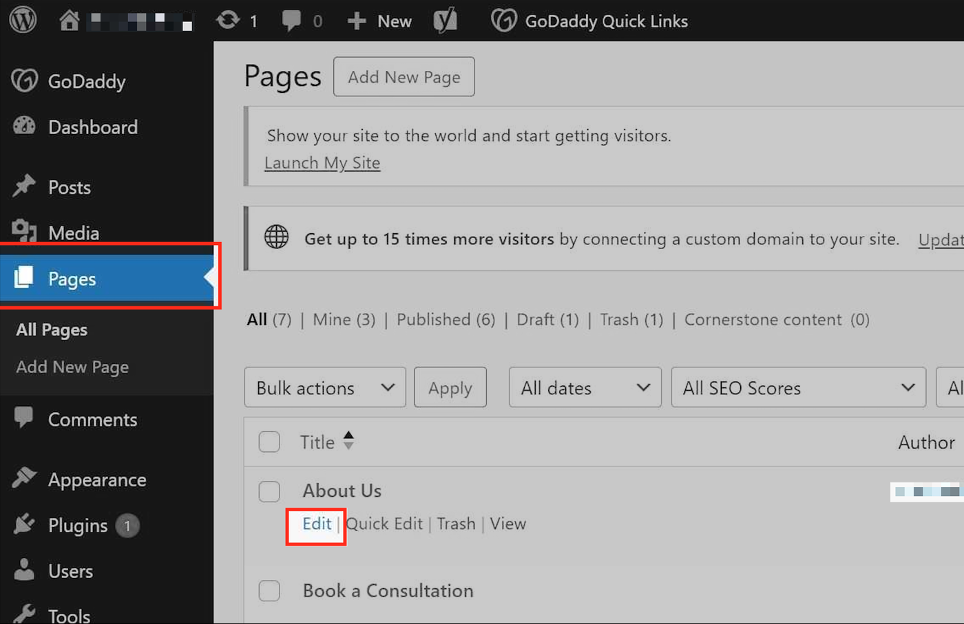 Gehen Sie zu Pages → Edit