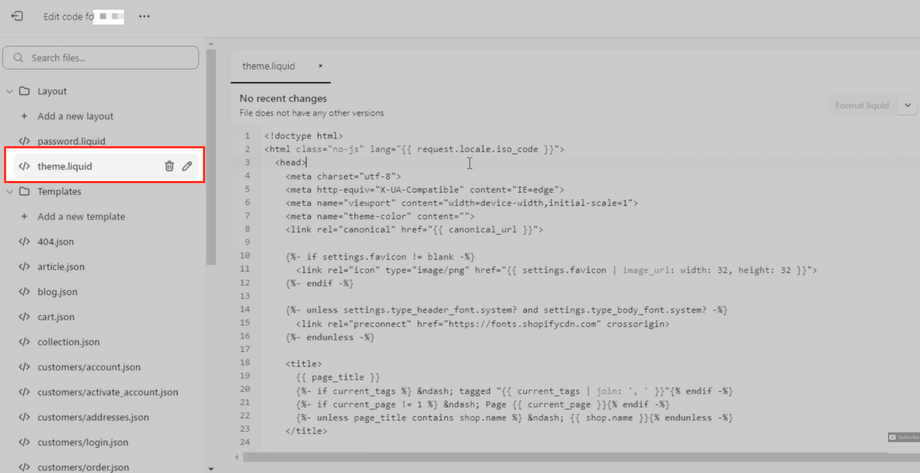 Öffnen Sie die Datei theme.liquid