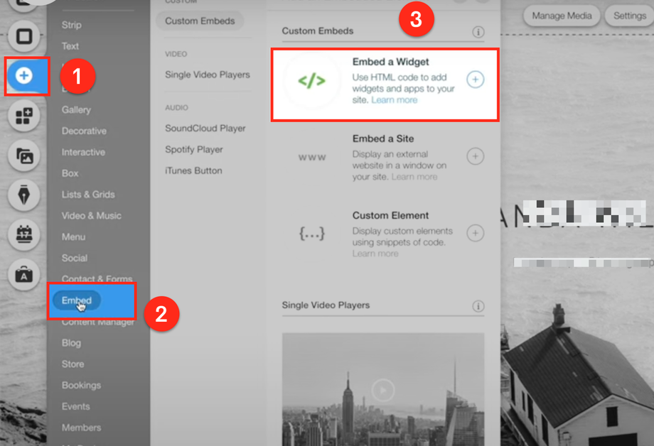 Wählen Sie Embed → Embed a Widget