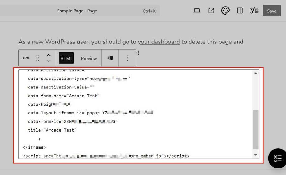 Fügen Sie den Einbettungscode ein