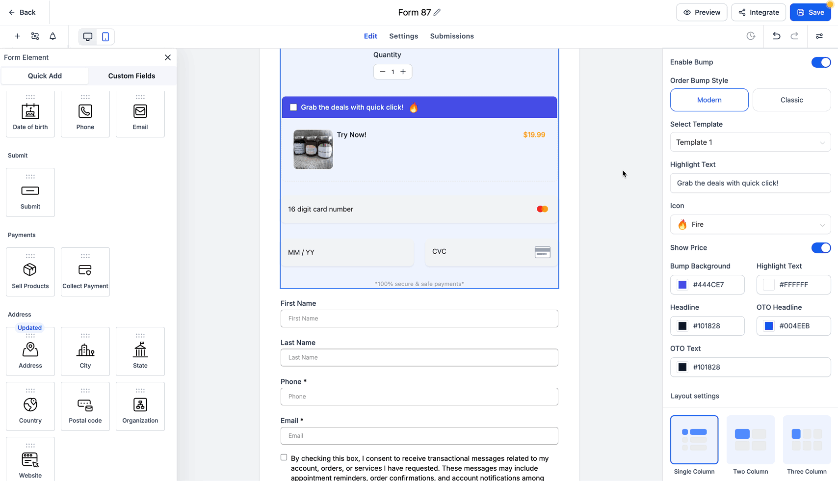 Moderne Order Bumps sind eine umsatzsteigernde Funktion, mit der Upsell-Angebote direkt in Ihre Formulare integriert werden.