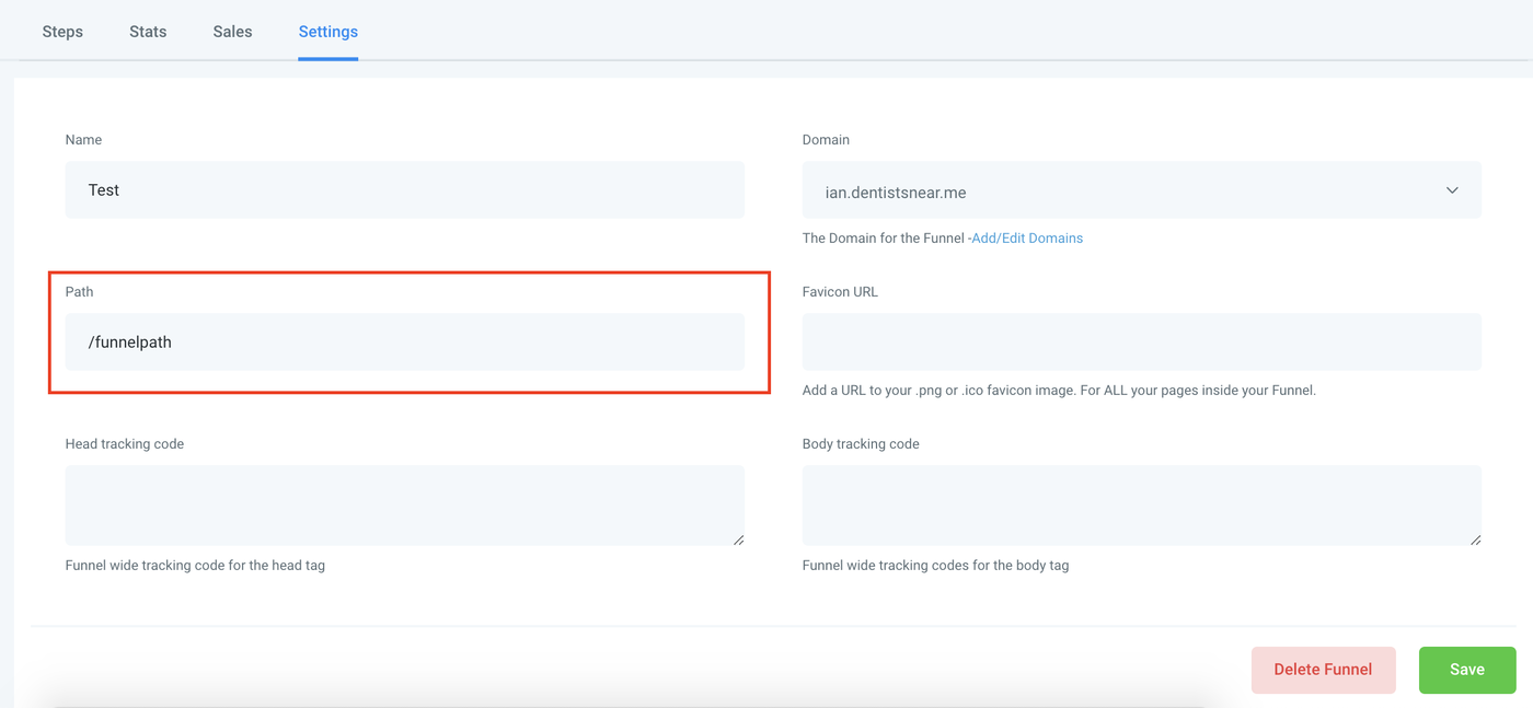 Dies ist die dem Funnel zugewiesene URL, die in den Einstellungen konfiguriert werden kann.
